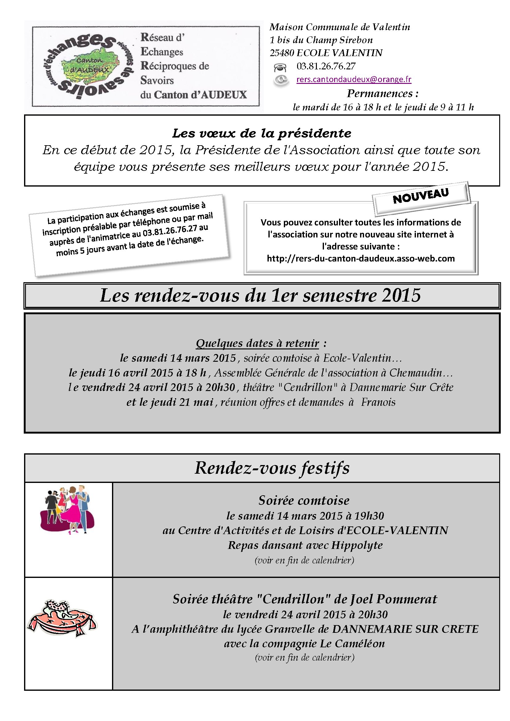 Voici le nouveau calendrier du réseau d’échanges de savoirs pour le 1er semestre 2015.