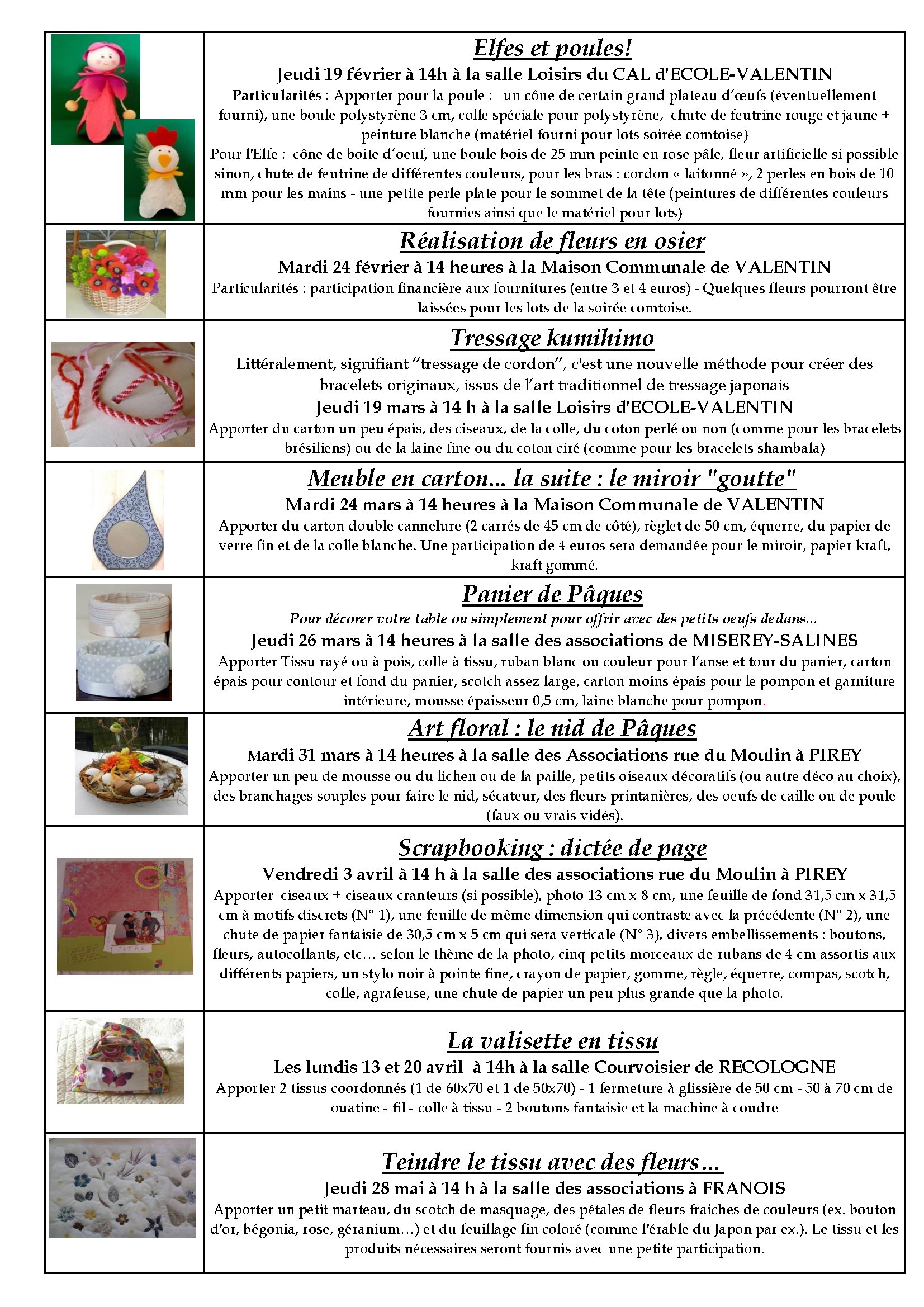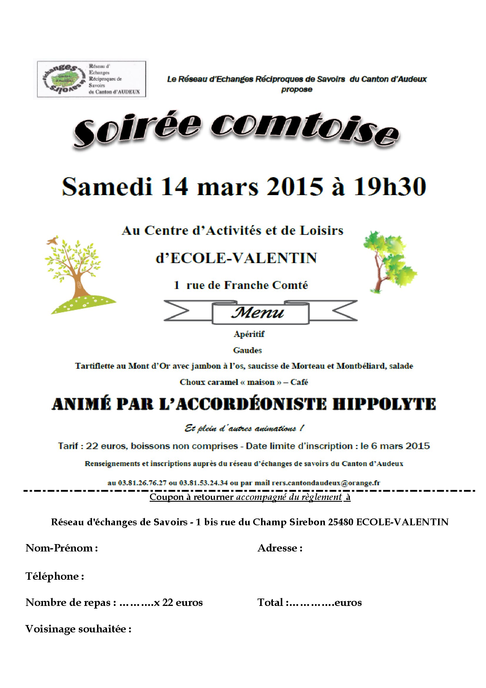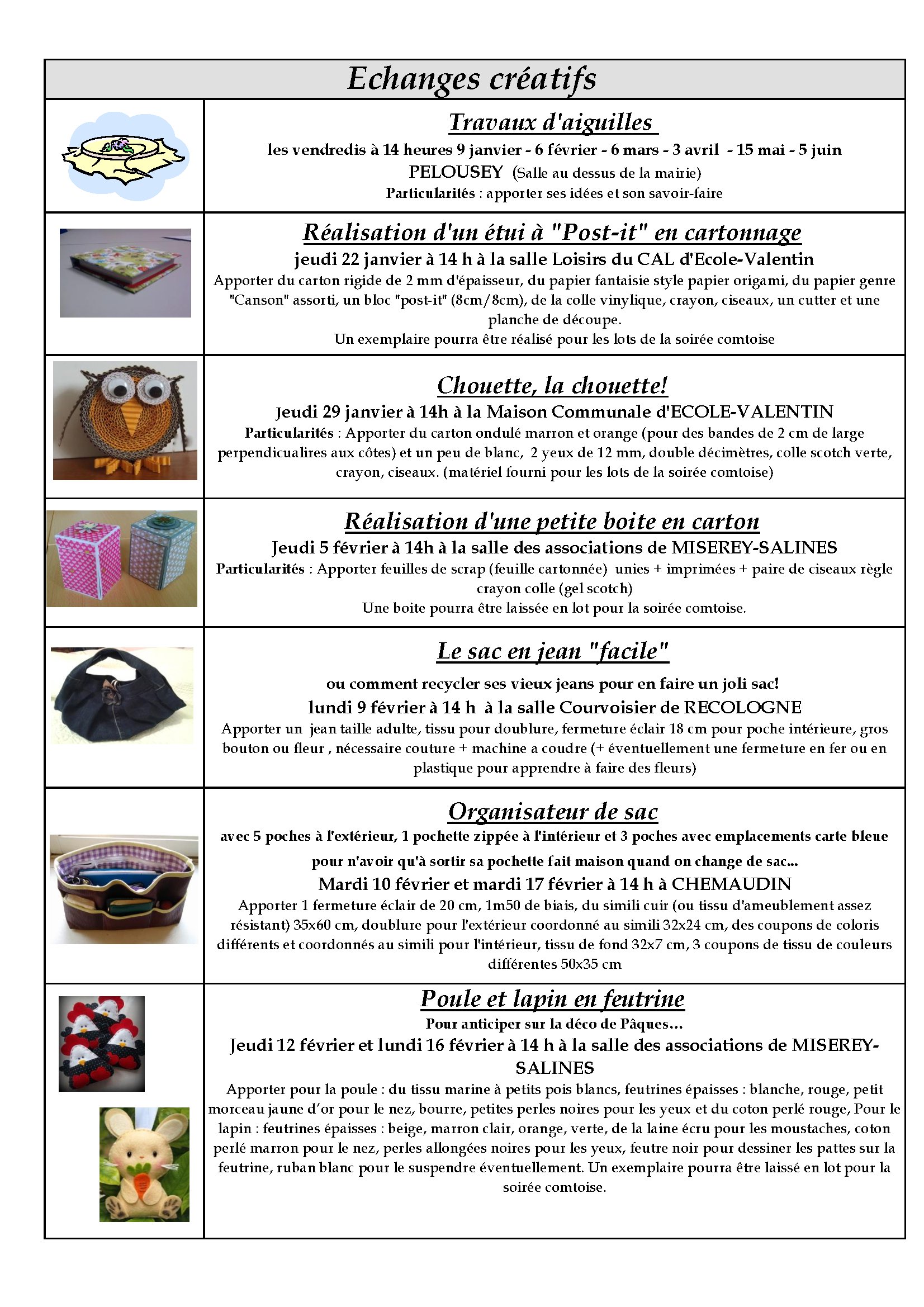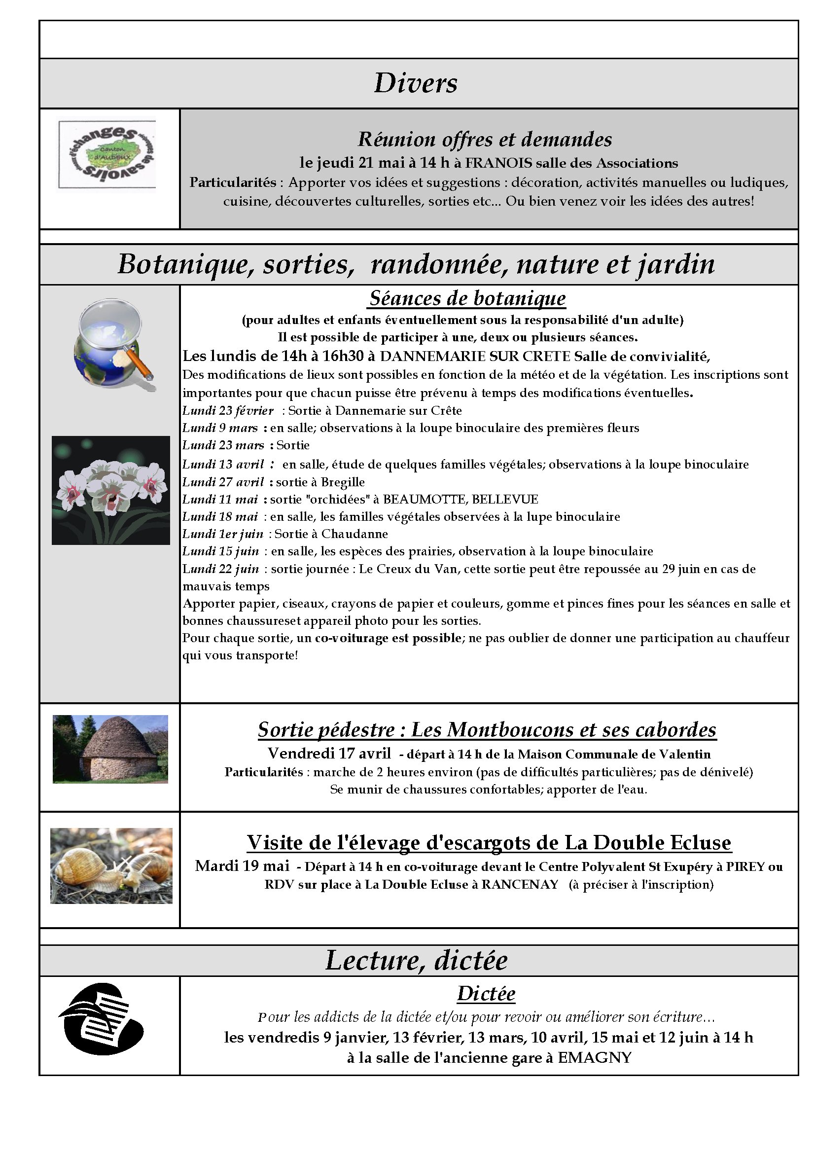 Si vous désirez participer à une ou plusieurs activités de ce calendrier, vous pouvez contacter par mail ou par téléphone (03.81.26.76.27) l’animatrice du réseau qui se tient à votre disposition pour tout renseignement. Il n’y a pas d’adhésion à payer pour s’inscrire au réseau; tout est basé sur le principe de l’échange. Le savoir, quel qu’il soit, ne se monnaye pas! Bienvenue à tous!