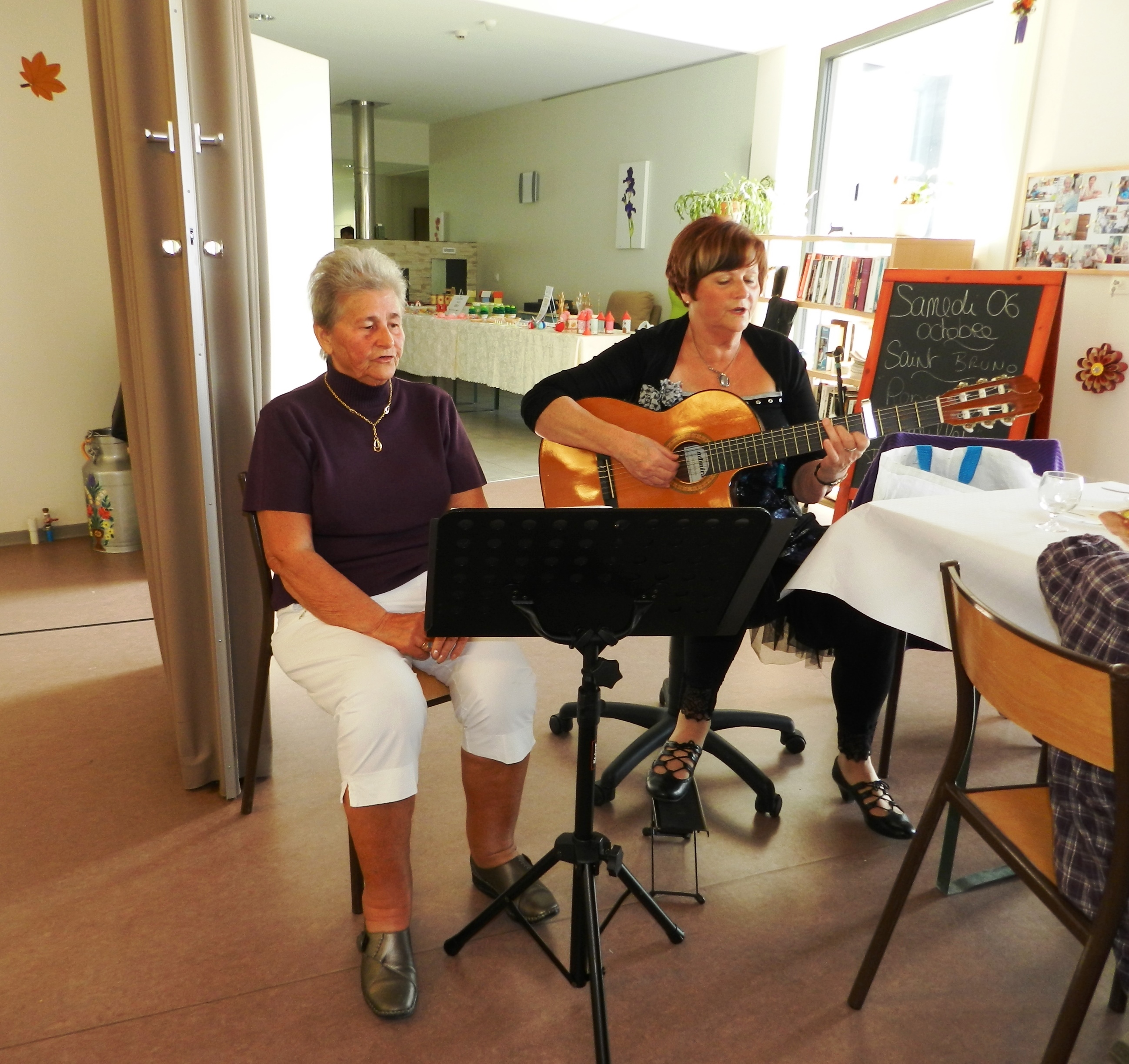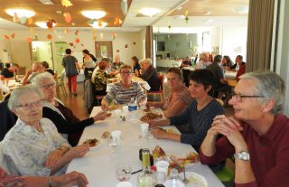 Samedi 6 octobre, c’était la fête aux Valentines : Le repas annuel des familles a rassemblé 75 convives qui ont apprécié le savoureux repas préparé par Brigitte et le personnel. Deux chanteuses , Régine et Geoffrette accompagnées à la guitare ont animé la fin de ce repas avec leurs chansons que le public a repris avec plaisir.