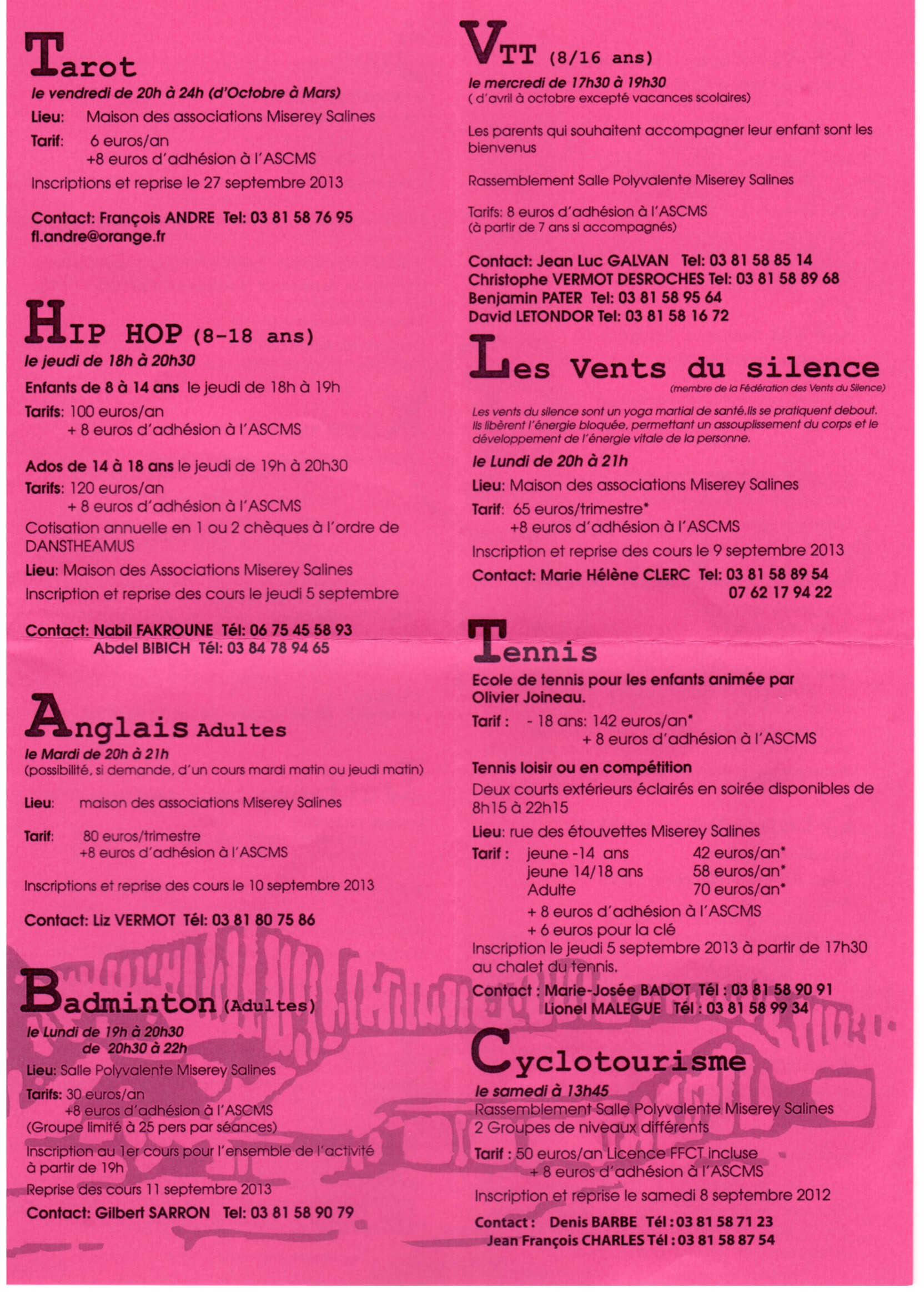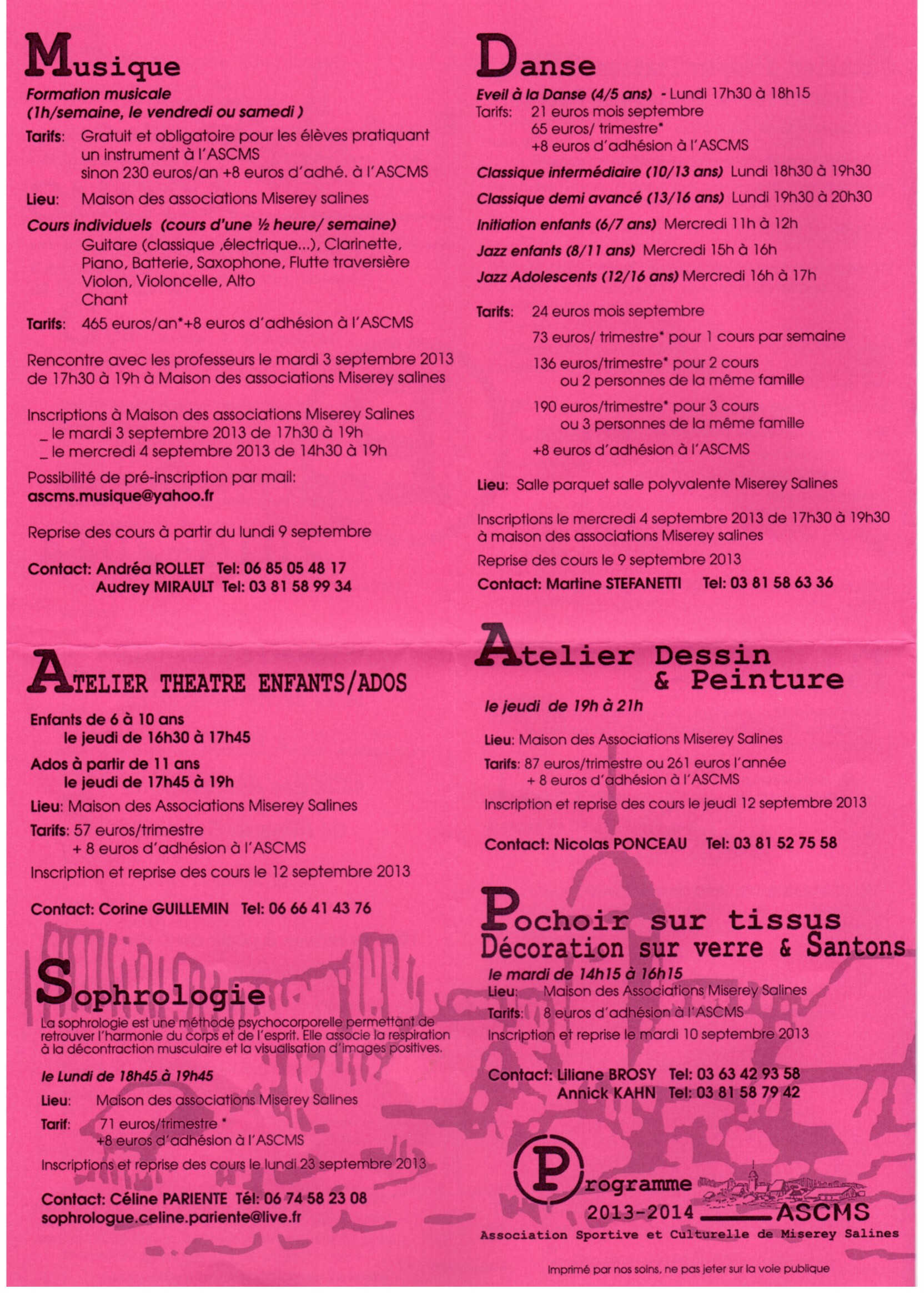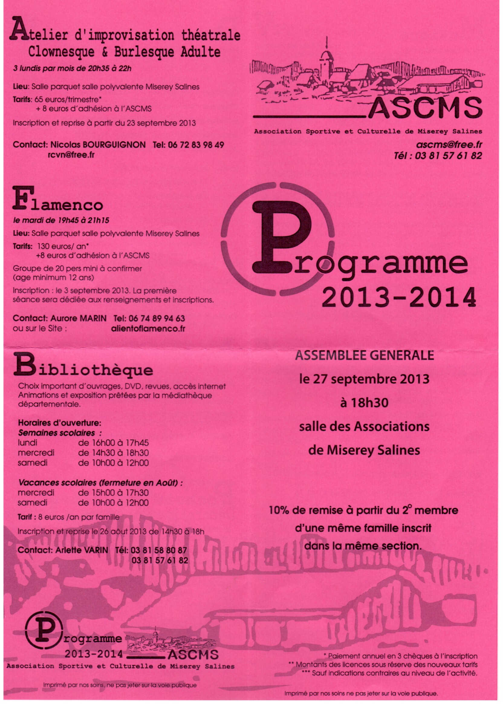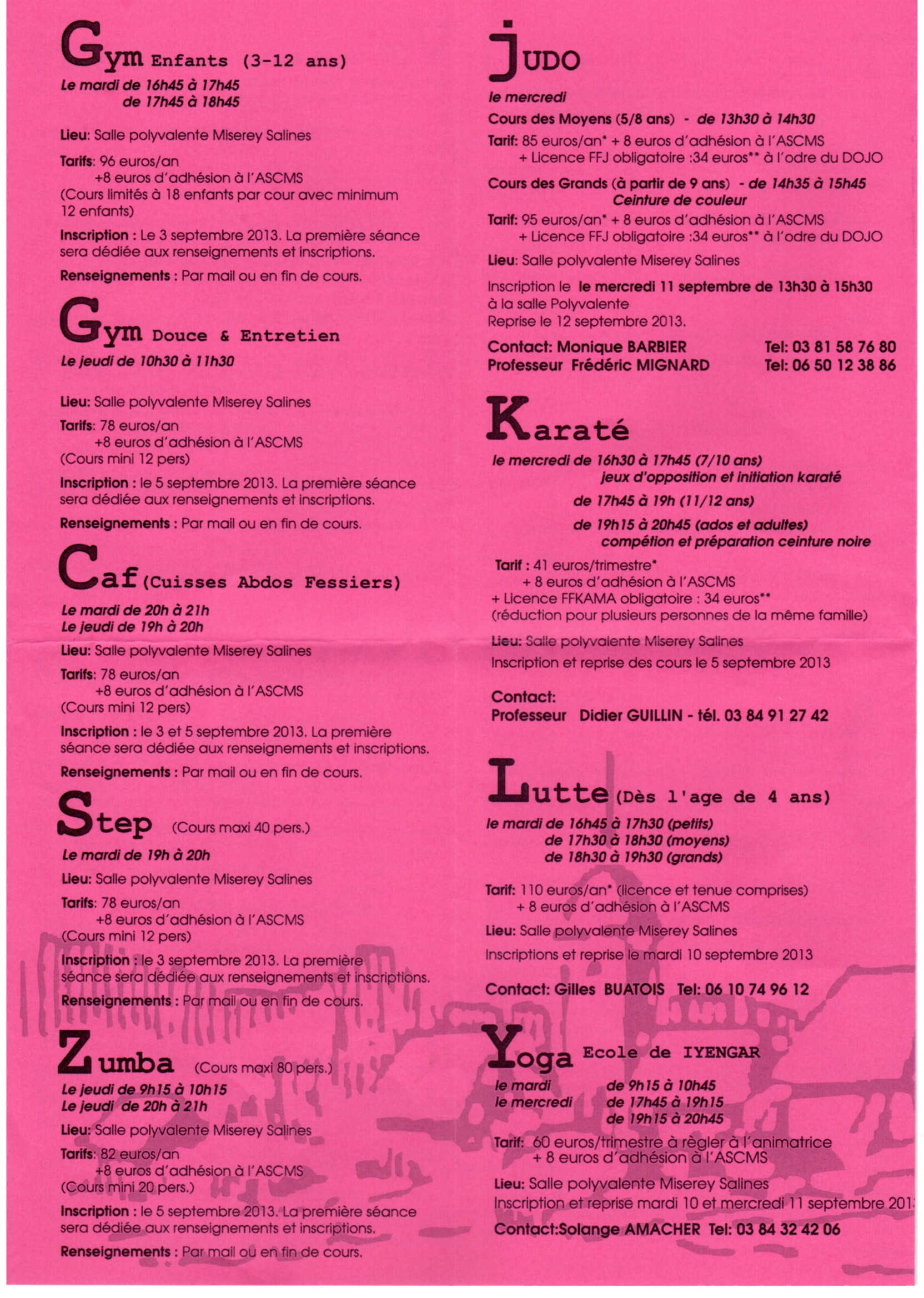 Auteur/autrice de la publication :Luc Publication publiée :20 août 2013 Post category:ASCMS Commentaires de la publication :0 commentaire L’association Sportive et Culturelle de Miserey Salines nous propose sont programme d’activités pour l’année 2013-2014 (Cliquer sur les pages que vous souhaitez consulter pour les agrandir). Read more articles Article précédentSpectacle de Musique 2013 de l’ASCMS Article suivantAudition 2014 de l’Atelier musical de l’ASCMS Vous devriez également aimer Fete de la musique à Miserey Salines le 21 Juin 8 juin 2013 Concert de Noel 2014 à Miserey Salines 11 décembre 2014 Le violon des Tsiganes – Musique et Chorale 18 décembre 2012 Laisser un commentaire Annuler la réponseVous devez être connecté pour publier un commentaire.